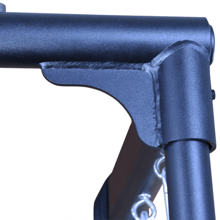 Carenagem em madeira Eucalipto Grandis proveniente de reflorestamento. Estrutura em aço carbono, acabamento em pintura eletrostática Epóxi preta micro texturizada. Longarinas e olhais em aço inox.