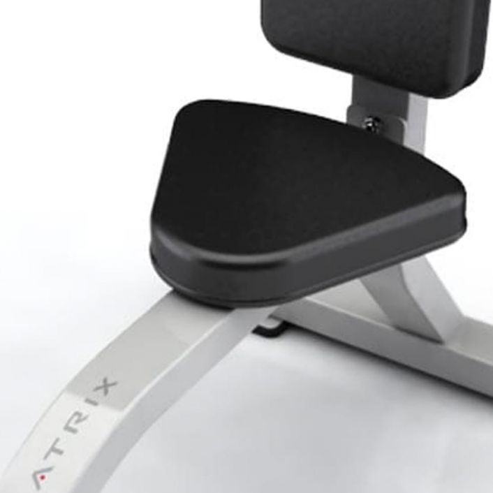 O ângulo do encosto é de 85 graus, melhorando o conforto e a estabilidade para os movimentos elevados.Apoio de pés para maior estabilidade.