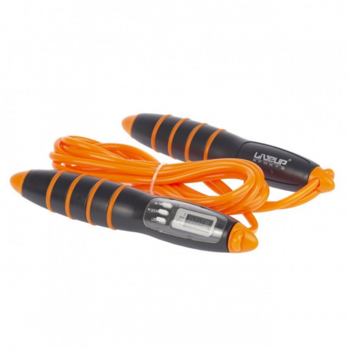 - Possuí contador digital com visor em LCD 4 funções (peso, tempo, caloria e saltos).