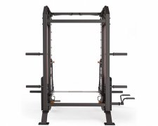 O Smith Machine é um equipamento de vetor linear ideal para treinamento de agachamento e supino deitado. Sua barra fixa aos trilhos laterais permite um exercício com maior estabilidade e auxiliando na postura, principalmente para iniciantes.