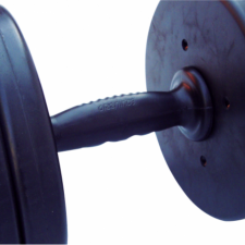 Halter montado com barra Dúctil e anilha recoberta por um material resistente flexível e inodoro. Barras anatômicas com encaixe para os dedos e palma das mãos.