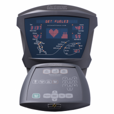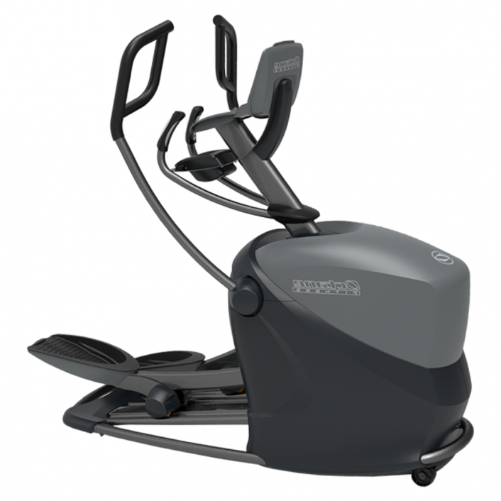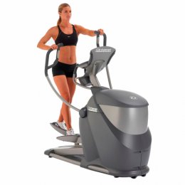 Equipamento profissional para trabalho aeróbio que realiza movimentos elípticos com as pernas e sem impacto, podendo trabalhar braços conjuntamente.