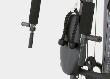Seu sistema de roldanas e cabos garante um movimento suave e silencioso durante toda a extensão do exercício.