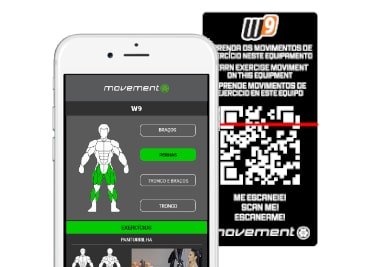 Para facilitar a execução dos exercícios a W9 conta com uma biblioteca de vídeos que podem ser acompanhadas pelo celular. O acesso a biblioteca é prático e rápido através da câmera do seu celular. Um adesivo com um código QR direciona o usuário diretamente ao hotsite de exercícios.