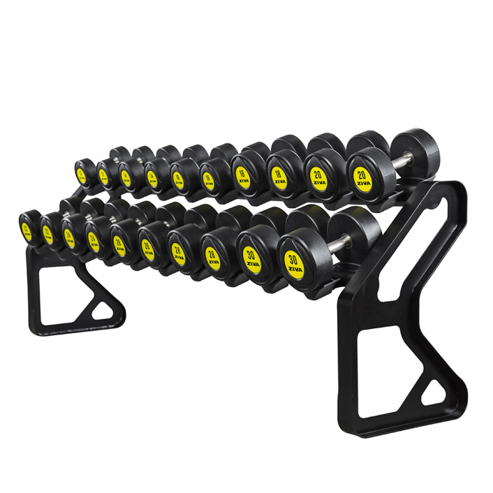 Rack com berços indicada para armazenar Dumbbell do tipo redondo. Possui modelagem própria para encaixar o halter de maneira simples e organizada.