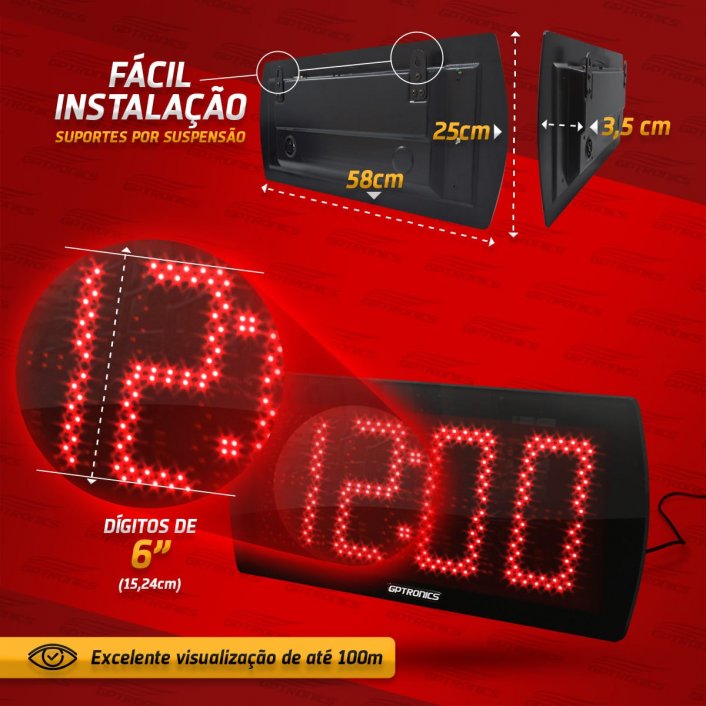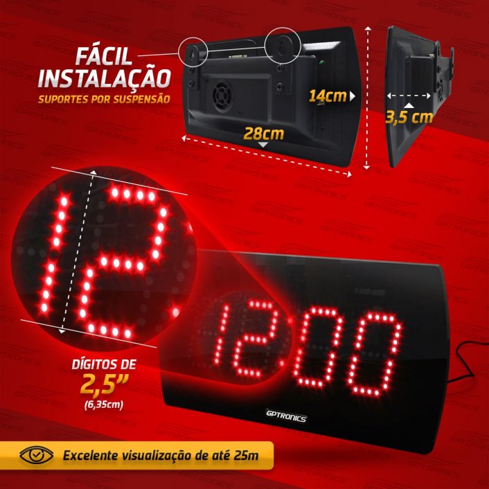 • Possui bateria interna de backup que mantém todas as configurações e hora corretas quando houver falta de energia.