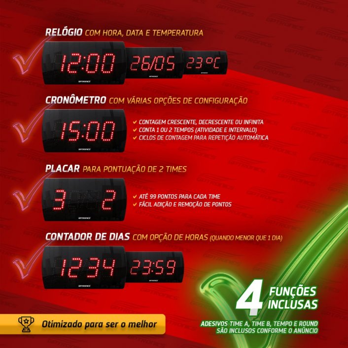 • Função já, o painel conta 3, 2, 1 antes de iniciar os tempos.