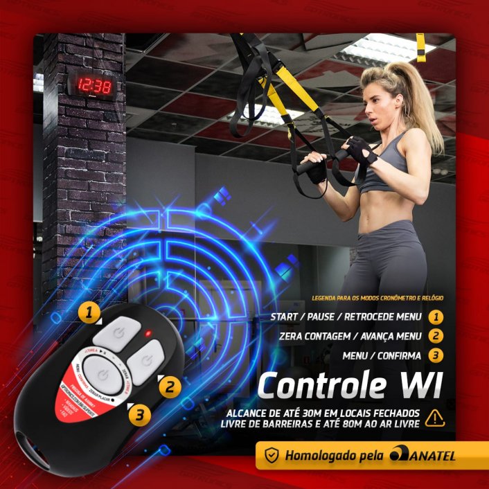 • Cronômetro com 1 ou 2 tempos, utilizados para atividade e intervalo;