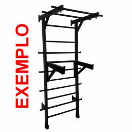 Feito em ferro, com apoios emborrachados para encaixe no Espaldar e apoiar as barras e pintura eletrostática a pó.