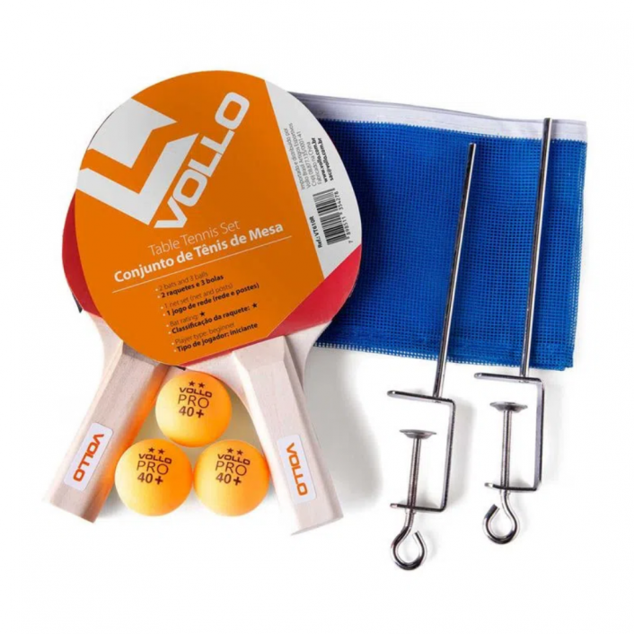 Kit Tênis De Mesa 2 Raq. 3 Bolas E Suporte - Vollo